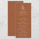 Projetado para coordenar com a nossa coleção de casamento Elegante da Lua Botânica e Estrelas, este menu de boho mostra uma ilustração de uma linha de creme de uma lua adorada com estrelas e folhagem em relação a um fundo de terracota. Personalize o menu de casamento da lua com seus nomes, data de casamento e ofertas de menus curados.