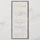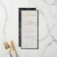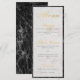 Um menu simples, mas elegante, com uma moldura de mármore preto e fundo de mármore branco e letra cursiva elegante para título e subtítulos. O título "Menu" é de folha de ouro falsa, os subtítulos (que podem ser alterados) são apenas de uma cor dourada semelhante.