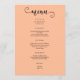 Apresentamos nosso Menu de Casamento de Pêssego com Caligrafia Romântica Elegante – uma deliciosa fusão de romance atemporal e elegância moderna que elevará a sua experiência gastronômica no seu dia especial. O menu apresenta um belo fundo de pêssego, preparando o cenário para uma celebração repleta de calor e sofisticação.
