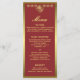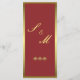 Um elegante cardápio de ouro e vermelho, com elementos de ouro para adicionar um toque de elegância e estilo ao seu casamento ou outra ocasião especial. Notas do Designer: tudo pode ser completamente personalizado, desde os elementos dourados no topo do menu até a redação de cada curso. Altere (ou até remova) se desejar. O verso do menu mostra o monograma do casal de noiva (que também pode ser mudado ou removido completamente).