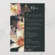 Este é um cartão de rack ou comida de casamento e menu de vinho. Lindos Verdes, Esmeralda, Antica, Vintage, Romântico O menu Casamento com um lindo gráfico floral elegante. Lindas cores antigas e charme vintage em um fundo esmeralda. Temas de casamento formais e boêmicos se adequam perfeitamente a este menu de vinho e comida e acrescentam romance à sua celebração.