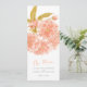 Linda cor de pêssego, cor d'água pintada menu de janto de casamento ou menu de evento especial. Edite este menu de 4 cursos com suas próprias palavras. Um simples e moderno cardápio de primavera de pêssego. Ideal para casamentos de pêssego fuzz, casamentos de primavera ou eventos temáticos de primavera de laranja claro. © Original hand watercolor painting e design por Sarah Trett para www.mylittleedenweddings.com no zazzle.