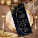 Eleve sua recepção sob as estrelas com este Menu de casamento de estrela cadente azul, sol e lua celestiais. Concebido num céu azul meia-noite romântico inspirado numa noite estrelada mágica, este menu elegante apresenta acentos de sol radiantes, uma lua crescente brilhante e um delicado padrão de constelações num cenário cósmico sonhador. Uma graciosa estrela cadente varre o design, realçada por um brilho suave de halo contemplativo que adiciona profundidade e charme místico. Perfeito para casais que planejam uma celebração celestial, este menu complementa lindamente a sua decoração enquanto guia os convidados através da sua experiência gastronômica sob um céu azul meia-noite cintilante.