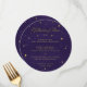 Um elegante menu de Halloween moderno, que apresenta um guião dourado (faux/digital - NOT foil print) e estrelas dispersas sobre um fundo roxo ligeiramente angustiado. Funciona em estoque de cartão quadrado ou redondo. Todo o texto que não seja o título é totalmente editável, para que você possa facilmente adicionar ou excluir texto e alterar o estilo/tamanho/cor/layout da fonte de acordo com suas necessidades. Este design está disponível em outras cores, em estoque de cartão de diferentes tamanhos e também na coordenação de convites e acessórios.