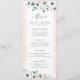 Mola-d-água moderna Eucalyptus verde e anêmona floral em fundo cor-de-rosa pincelado, com guião-menu de tendências, elegante e na moda, menus de casamento excelente para casamento rústico, casamento botânico e casamento de praia em primavera e verão. Ver todas as peças correspondentes na coleção