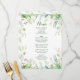 Este cardápio de casamento apresenta folhas de eucalipto em verde botânico. Isto é perfeito para um casamento de primavera de verão.