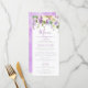 Uma parede de jardim floral roxa adornou um menu moderno de 3 cursos, com escolha de entrada e sobremesa. Um cardápio elegante com flores correspondentes no verso, perfeito para se pôr nas mesas antes que os convidados os sacudir para revelar os cursos noturnos. Também disponível em um cartão elegante tradicional de 4 x 9". Convite, rótulos de vinho e outros itens desta coleção podem ser encontrados no nosso compro.