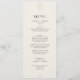 Este refinado menu de casamento da coleção Everly apresenta a tipografia negra minimalista e os sotaques dourados num fundo de creme suave. É perfeito para um visual elegante e eterno. Este menu de janto pode ser usado para recepção de casamento, janto de ensaio ou qualquer evento.