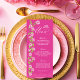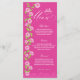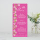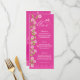 Entra num mundo de perfeição cor-de-rosa e prepara-te para deslumbrar com o nosso menu de celebração da festa Quinceañera. Nosso menu Quinceañera é o epítome da elegância, estilo e moda, projetado para fazer você se sentir como uma verdadeira princesa no seu dia especial. O design apresenta o bonito quadro de flores cor-de-rosa. O verso apresenta o nosso belo vestido elegante rosa brilhante. Design por Moodthology Papery