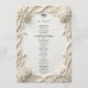 Elevate your black-tie reception with this sophisticated design, featuring a stunning faux plaster relief effect and elegant ivory tones for a timeless look.This design features a masterful visual simulation of carved plaster and antique stone. The artwork depicts a sophisticated border of white roses and swirling baroque vines, rendered with soft dimensional shading to create a monochromatic, tone-on-tone ivory and cream palette. A delicate serving cloche icon sits above the formal serif typography and handwritten calligraphy accents.This is a flat printed image with a faux sculpted effect, not actual raised material or embossed paper.