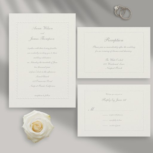 Menu Faux Embossed Beaded Frame Ecru Elegant Weding
