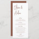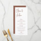 Projetado para combinar com nossos convites de casamento de Script Manuscrito Moderno. Uma bela design baseada na tipografia, com uma sensação minimalista, com uma escrita manuscrita de terracotta moderna e uma letra serif clássica. Personalize com seus itens de menu usando oito campos de texto personalizados.