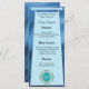 Um menu elegante com um padrão azul e folha de folhas e seu número de aniversário exclusivo em brilho e ouro.