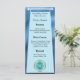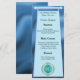 Um menu elegante com um padrão azul e folha de folhas e seu número de aniversário exclusivo em brilho e ouro.