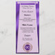 Um menu elegante com um padrão roxo e folha e seu número de aniversário exclusivo em brilho e ouro.