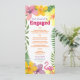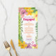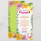 Adicione um toque tropical à sua celebração com este cartão de menu de festa de compromisso luau, apresentando flores de hibisco coloridas, samambaias exuberantes e um flamingo rosa divertido. Totalmente personalizável com o menu do seu evento, nomes e data, é o detalhe perfeito para um jantar de compromisso com tema havaiano, à beira da praia ou no quintal. Coordena com o conjunto completo de convites luau para uma aparência coesa.