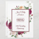 Celebrar um casal especial "50º Aniversário de Casamento" com este ousado, burgundy e branco "Cartão de Menu de Recepção" floral. Para personalizar, basta inserir seu texto em nosso modelo fácil. Verifique o conjunto completo de acessórios correspondentes para esta "Coleção de Aniversário de Casamento 50". Aproveite! (Observe que o número 50 pode ser alterado simplesmente selecionando e informando outro número.)