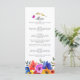 Adicione um pedaço de cultura vibrante ao seu casamento com o nosso cardápio de casamento floral inspirado na Fiesta Mexicana. Este cardápio maravilhosamente desenhado é adornado com padrões florais em um motim de cores ousadas — vermelho rico, amarelos ensolarados, blues brilhantes e verdes exuberantes — que captam a essência de uma festa mexicana viva.
