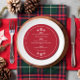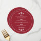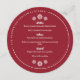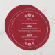 Redondo o menu do janto de Natal em vermelho com fontes brancas modernas e modernas, e seu nome e o evento em um texto curvo ao longo da borda do menu janto de Natal com formato de floco de neve redondo. O menu janto de natal Red Snowflake impresso num cartão redondo personalizado com o seu nome, o evento, e começa, entradas e sobremesa com flocos de neve brancos. Decorre a mesa de janto de Natal com menus vermelhos e brancos impressos onde seus hóspedes podem ver o que começa, entradas e sobremesa que você estará servindo esta noite com este menu de janto de Natal redondo, floco de neve vermelho.