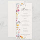 O cardápio de casamento elegante floral moderno Wildflower Grace é uma maneira sofisticada e elegante de apresentar a refeição de casamento aos convidados. Com um layout moderno e limpo acentuado com delicadas flores silvestres em aquarela, este cardápio combina elegância com charme floral contemporâneo.
