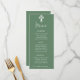 Um menu verde verde-férn com uma cruz floral branca para batizar ou batismo. Personalize as escolhas dos menus, o nome do seu bebê, e mude o batismo para o batismo, se preferir. Parte da Coleção Floral Cross Christening.