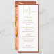 Um design de Menu de Casamento Elegante Moderno e Verde-Laranja-queimado. Um design personalizado do Menu Casamento com suas informações facilmente alteradas para personalizar seu papel de carta de casamento. Papel de carta de casamento pessoal dos Designs Finos de Chessie.