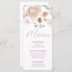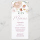 Da nossa coleção de Flores Moles, faça do seu evento um destaque com estes cartões de menu impressionantes. Apresenta um tom aquoso de pinks, blush, creme e verde. Fácil de personalizar com os detalhes do menu. Muitos tamanhos para escolher.