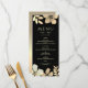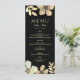 Moderno, elegante, chic, cardápio preto de casamento com flores douradas de aquarela.