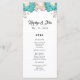 O Menu Flores Azul Branco Floral Floral Blue Watercolor é excelente de colocar na mesa do convidado de casamento. Personalize-o com suas informações.