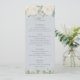Melhore sua configuração de mesa de casamento com este cardápio maravilhosamente projetado, com flores brancas delicadas de aquarela e sotaques sutis de ouro sobre um fundo azul-claro e macio. Os refinados elementos florais trazem um toque de sofisticação e romance, fazer-o um complemento perfeito para o seu dia especial. No verso, um padrão uniforme de flores brancas de aquarela adiciona profundidade e harmonia, criando um aspecto coeso e eterno. Projetado para se adequar a uma variedade de estilos de casamento, este menu exude o charme clássico e a elegância subestimada, garantindo uma experiência memorável e refinada de jantar para os seus convidados.