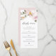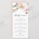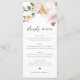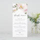 Adicione um sotaque floral elegante à sua capa de mesas de eventos com esta papelaria de cartões de menu de bebidas florais personalizável. Ele apresenta um buquê floral de aquarela de flores rosas e verdes. Personalize este cartão de menu floral de cor d'água adicionando seus próprios detalhes. Esta placa de menu de bar cor-de-rosa pincelada é perfeita para primavera e casamentos no inverno, chás de panela, chás de fraldas e muito mais.