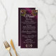 A frente apresenta buquês de flor silvestre em lindas cores de verão em um fundo roxo com detalhes do menu e um monograma de folhas com link. O verso tem um espaço reservado para o monograma foliar ligado também. Alterar as fontes pode criar uma aparência mais elegante ou rústica. Disponível em várias cores para seu tema de casamento. Projetado para coordenar com a coleção Rustic Wildflower & Ribbon. Para alterar os detalhes, clique em "Personalizar". Para mover o texto ou alterar o tamanho, a fonte ou a cor do texto, clique em "Clique para personalizar mais"