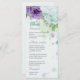 flores românticas azuis e roxas verdes folhas cardápio de casamento botânico