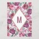 Flores elegantes, sofisticadas e rústicas em tons de rosa e roxo com tipografia em gliter dourado rosa impresso falso em lantejoulas em um fundo rosa bege claro, cartões de menu para recepção de casamento. Este design clássico e sofisticado é perfeito para recepções de casamento elegantes, sofisticadas e modernas. Personalize com o seu próprio cardápio na frente, juntamente com seus nomes e datas. Em seguida, personalize o verso com a inicial do seu monograma. Todos os designs são impressos a partir de fotos.