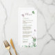 Menu flores roxas folhas verdes borboletas casamento
