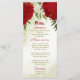 Belo cartão de cardápio de casamento com flores vermelhas e brancas e folhas verdes Os detalhes da relva de ouro são simulados. PARA MAIS PRODUTOS CORRESPONDENTES, clique na coleção acima ou entre em contato comigo