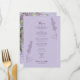 Decore seu dia especial com este requintado Cartão de Menu de Casamento Lavender Blooms. Este encantador Cartão de Menu captura a essência do romance e da tranquilidade, apresentando uma suave tonalidade lavanda que define o tom perfeito para o seu casamento.
