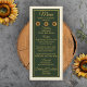 Menu Floresta de Casamento de Girassol Verde e Dourada
