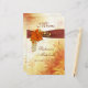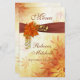 O outono vermelho e ouro deixa o folheto do Menu de Casamento.