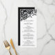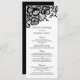 Cartão preto e branco elegante preto chique formal do menu do casamento da série | dos artigos de papelaria do casamento do laço do cartão | do menu do casamento do laço preto chique moderno com flores e as folhas pretas em um estilo chique do laço. Estilo de pia batismal formal sofisticado, com tipografia chique clássica. Cartão na moda do menu do casamento. O *** NOTA POR FAVOR: Este cartão não é feito do laço real. Se você muda a pia batismal ou o tamanho da pia batismal, pode alterar-se como seus artigos de papelaria imprimem. Imprimirá a maneira que você a vê em seu monitor. Eu não verei seu cartão uma vez que você o pede, e Zazzle não editará qualquer coisa (erros tipográficos, alinhamento, etc.).