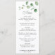 Este clássico menu de casamento formal de eucalipto minimalista é perfeito para elogiar um casamento simples. A design apresenta uma bela fonte de caligrafia e uma aquarela verde eucalipto.