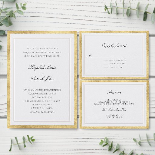 Serve your wedding feast in timeless style with this Elevated Faux Gold Wedding Menu, featuring a refined double frame design and classic calligraphy-style typography. Set on a soft pearl background with a subtle watercolor paper texture, this menu brings elegance and sophistication to every table.