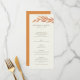 Este menu de recepção de casamentos outono apresenta uma ramificação laranja de arame suave, com folheado, que enquadra o texto do menu de janto da tipografia elegante e fácil de personalizar. Personalize ainda mais este menu mudando a cor de fundo do marfim suave para a cor de sua escolha e adicione sua foto de noivado favorita ao backer para um verdadeiro convite gentil.