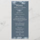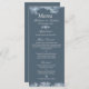Menu fosco azul casamento no inverno para personalizar com as refeições escolhidas.