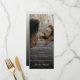 Adicione um toque pessoal e polido às suas mesas de recepção com este Menu Foto Moderna e Casamento Preto, com uma fotografia de um belo casal sob uma cobertura preta macia para uma aparência limpa e contemporânea. Projetado com um roteiro elegante, tipografia moderna e um layout simples, este menu apresenta suas opções de janto de recepção em estilo — perfeito para um tema minimalista. Seja exibido em cada cenário ou enquadrado na mesa, ele complementa sem esforço sua decoração recepção de casamento enquanto celebra a noiva e o noivo de uma forma significativa e moderna.