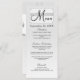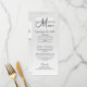 Um belo menu de casamento com o nome da noiva e do noivo, a data do casamento e itens de menu personalizáveis, acentuados com a inscrição manual, design de Menu de Casamento Moderno de Script Elegante Simples de Foto Personalizado, com um monograma inicial de solteiro ou inicial de solteiro e nomes de noiva e noiva personalizados para criar seu próprio logotipo de casamento exclusivo. Adicione os itens do menu de casamento na frente do cartão. Você pode personalizar completamente a cor do plano de fundo, o estilo da fonte e adicionar texto extra na parte traseira da placa. Use apenas a opção "personalizar". A parte de trás apresenta a sua fotografia e o seu espaço para adicionar uma nota personalizada - ou elimina facilmente a fotografia e a nota. Simples e elegante com uma sensação rústica - coordena-se lindamente com tantos estilos de casamento de hoje.