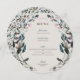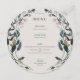Este elegante e chic menu de casamento mostra os florais de aquarela pintados em tons azuis e cor-de-rosa e vem com um padrão floral correspondente no verso. Personalize-o com seu próprio texto usando os modelos fornecidos. A cor de fundo é definida para uma cor neutra da casca do ovo, e coordena com nossa coleção de casamento "Garden Crest" em Eggshell. Mas fique à vontade para escolher uma nova cor de preenchimento para combiná-la com o tema do seu casamento. Clique no botão "personalizar" para deixar espaço para mais ou menos itens ou aumentar/diminuir o tamanho da fonte, conforme necessário. Este menu ficaria excelente colocado no dentro da placa de janto de cada convidado.