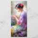 Uma pintura gerada por IA de uma garota segurando uma flor em suas mãos.