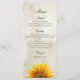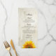 Menu girassol. Cartão de menu do janto de casament
