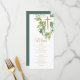 Greenery Floral Botanical Cross Elegant Baptism Menu apresenta uma cruz branca sobre folhas de eucalipto pintadas a verde e verde com as informações do menu abaixo. Personalize editando o texto nas caixas de texto fornecidas. Elaborado por ©2022 Evco Studio www.zazzle.com/store/evcostudio